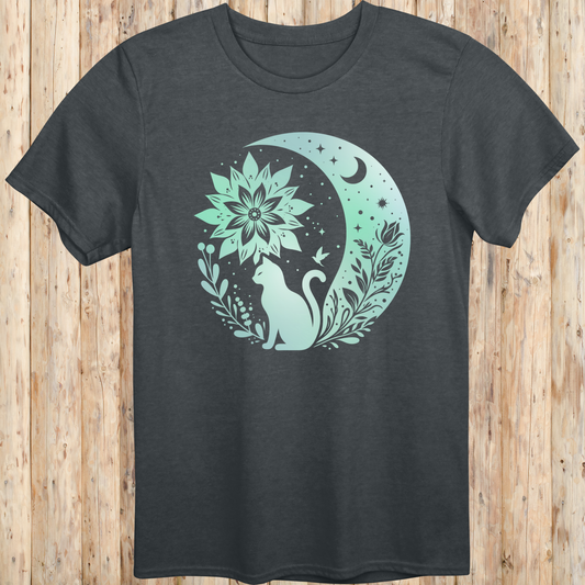 Mystical Cat Moon Silhouette T-Shirt