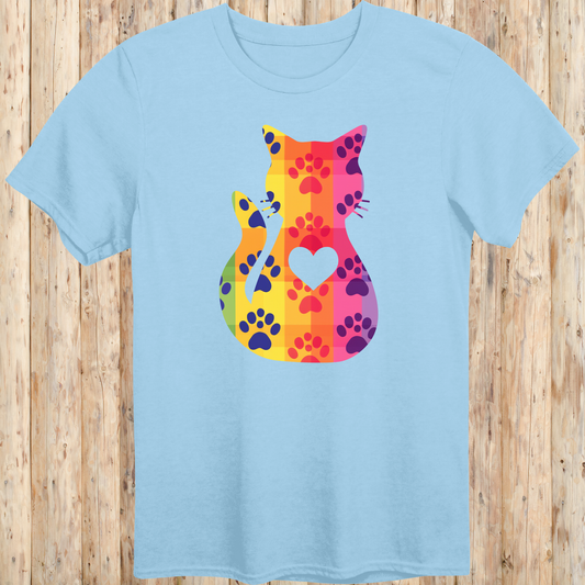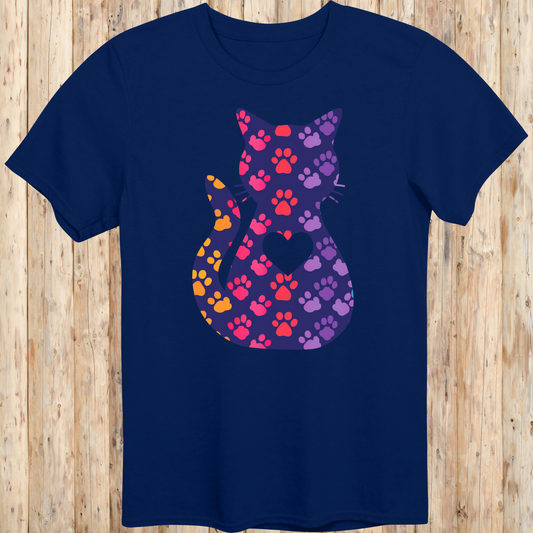 Colorful Cat Silhouette with Paw Prints T-Shirt