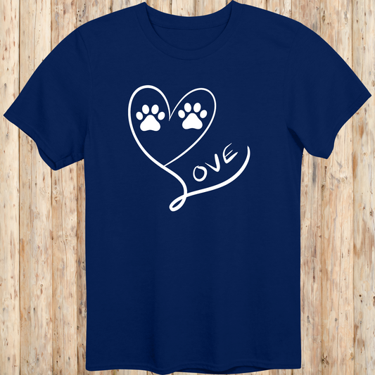 Love Heart Dog Cat Paw Prints T-Shirt