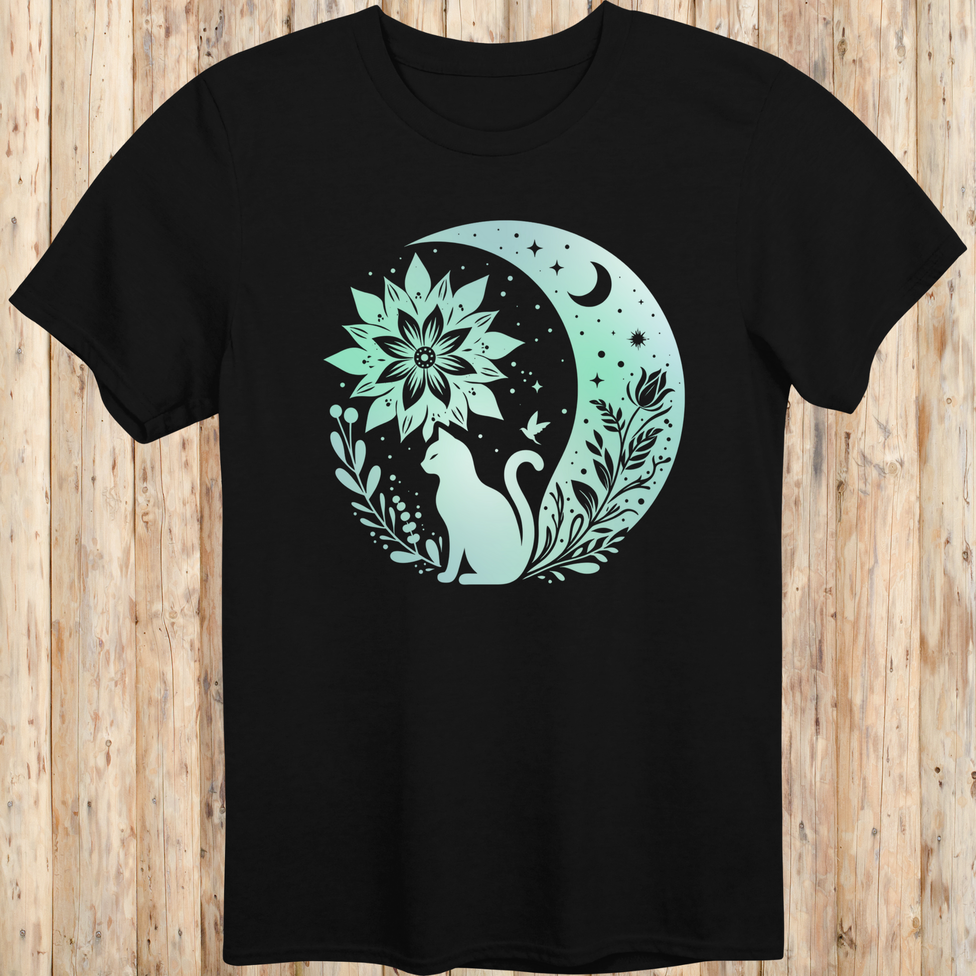 Mystical Cat Moon Silhouette T-Shirt